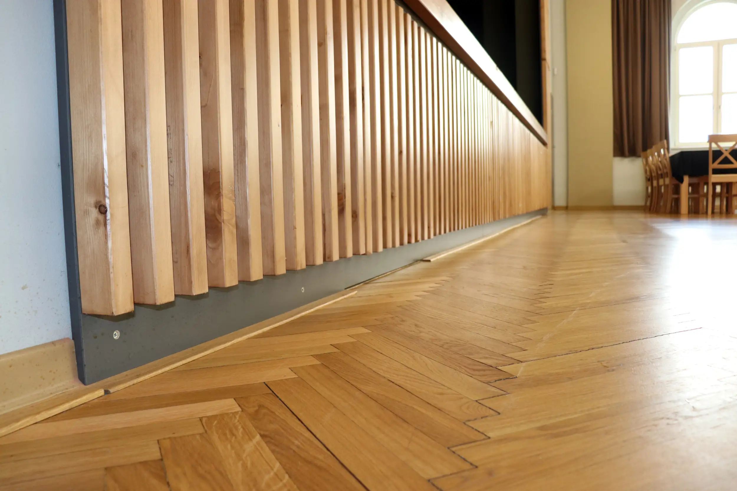 Kulturní dům Havraň Date: 2025 Category: Dřevěné podlahy Jméno Akce:: Kulturní dům Havraň Místo:: Havraň realizace:: 2024 prováděné práce:: vlýskové podlahy Tags: historické budovymasivparketyrekonstrukcesály